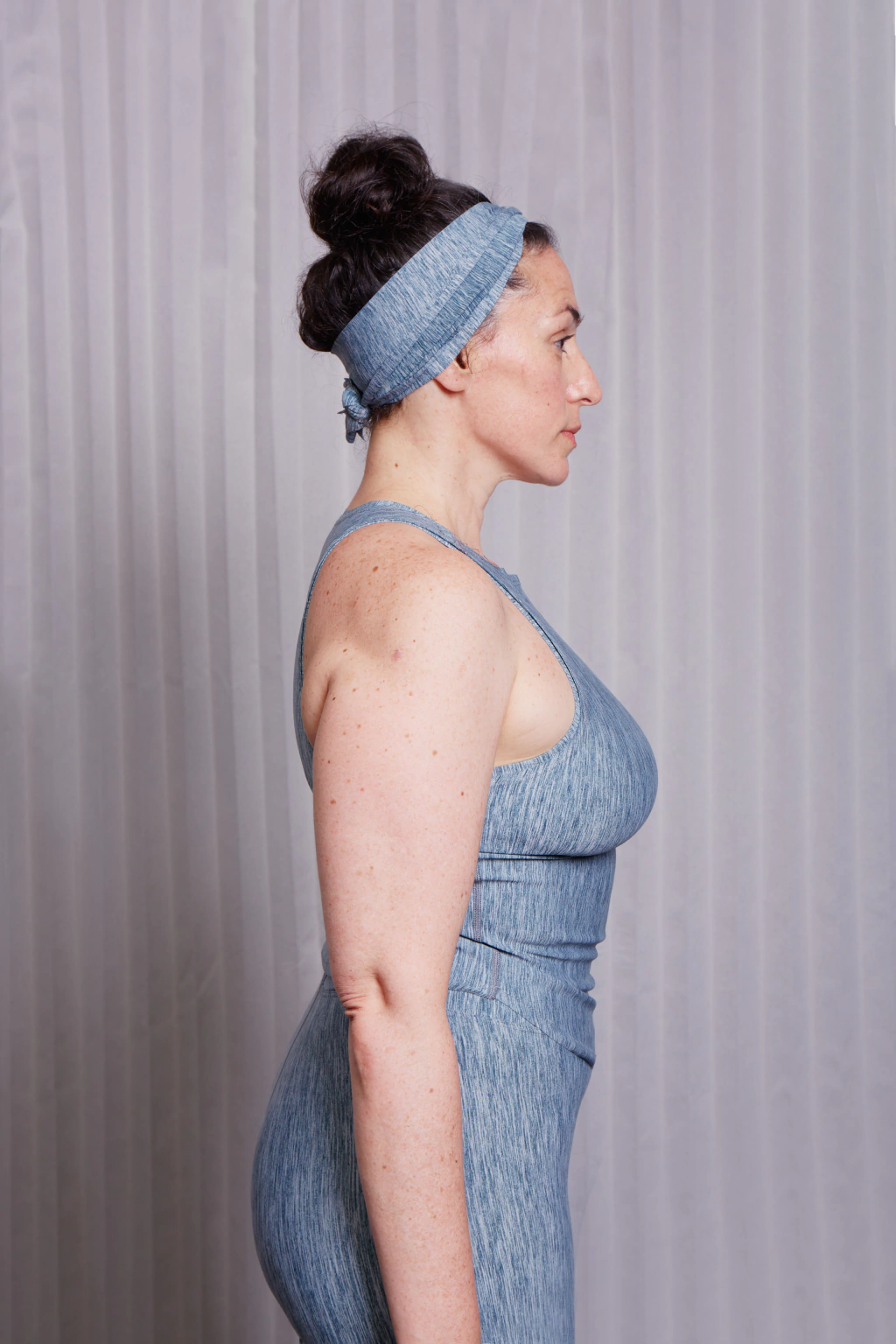 MUSCULOSA con diseño de pechera frontal y espalda deportiva; su tejido elástico genera contención y facilita el movimiento.